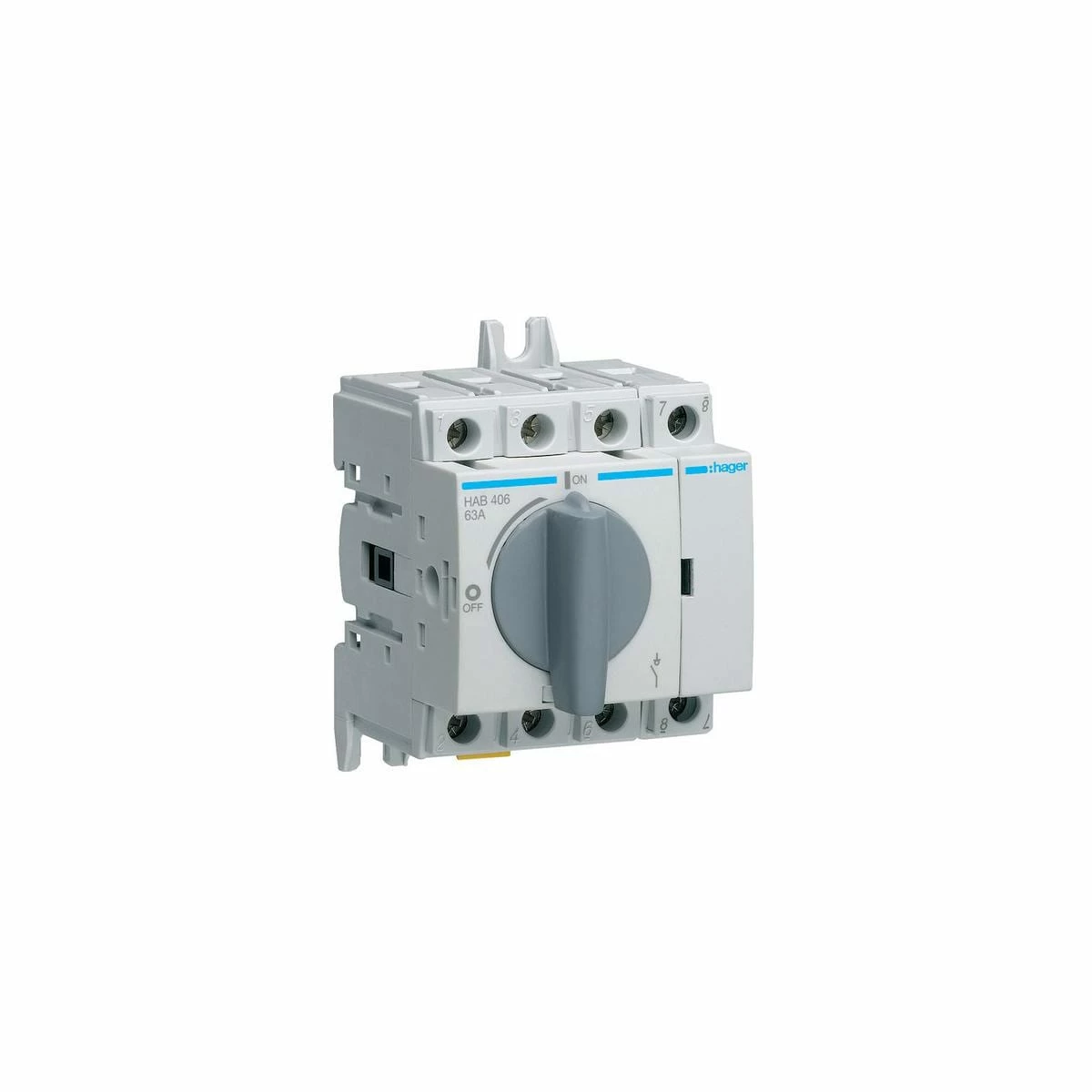 Lasttrennschalter 4polig 63A für Hutschiene oder Montageplatte. Lasttrennschalter für die Montage auf Hutschiene oder Montageplatte, Drehantrieb direkt am Gerät im AUS-Zustand mit einem Vorhängeschloss verriegelbar. Gewährleistet das Ein- und Ausschalten unter Last und eine Sicherheitstrennfunktion in allen Niederspannungsstromkreisen.