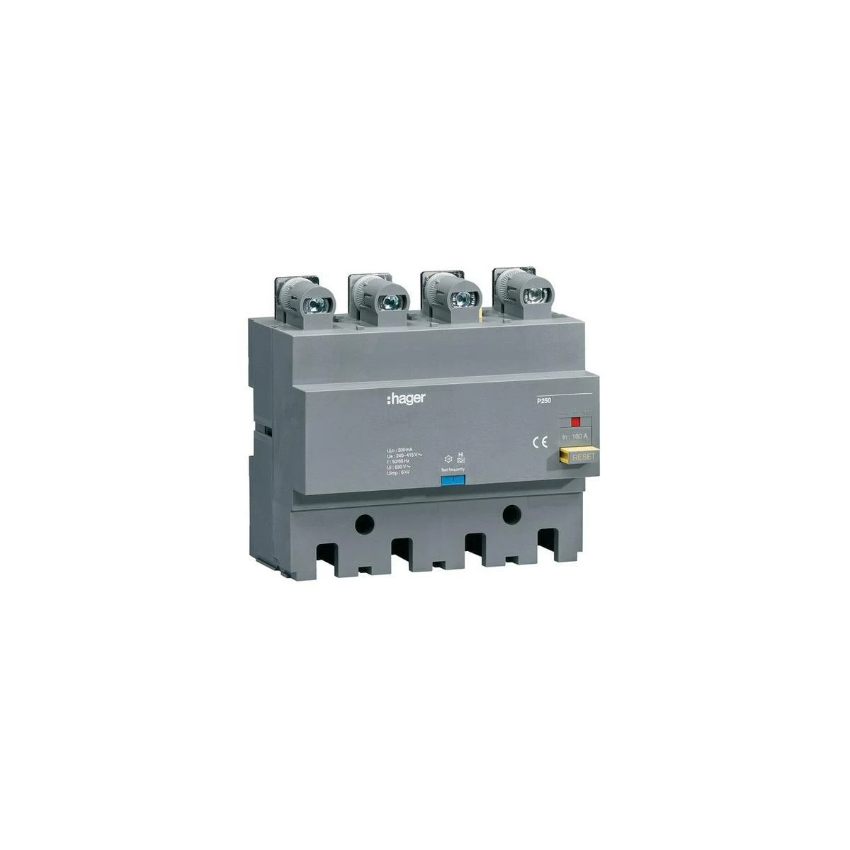 FI-Block P250 4P 160A Idn 30 mA fest. Elektronischer FI-Block gemäß DIN EN 60947-2 zur Nachrüstung an Leistungsschalter und Lasttrennschalter. Aufgebaut in modularer Bauform zum einfachen Anbau an die Leistungs- bzw. Lasttrennschalter.
