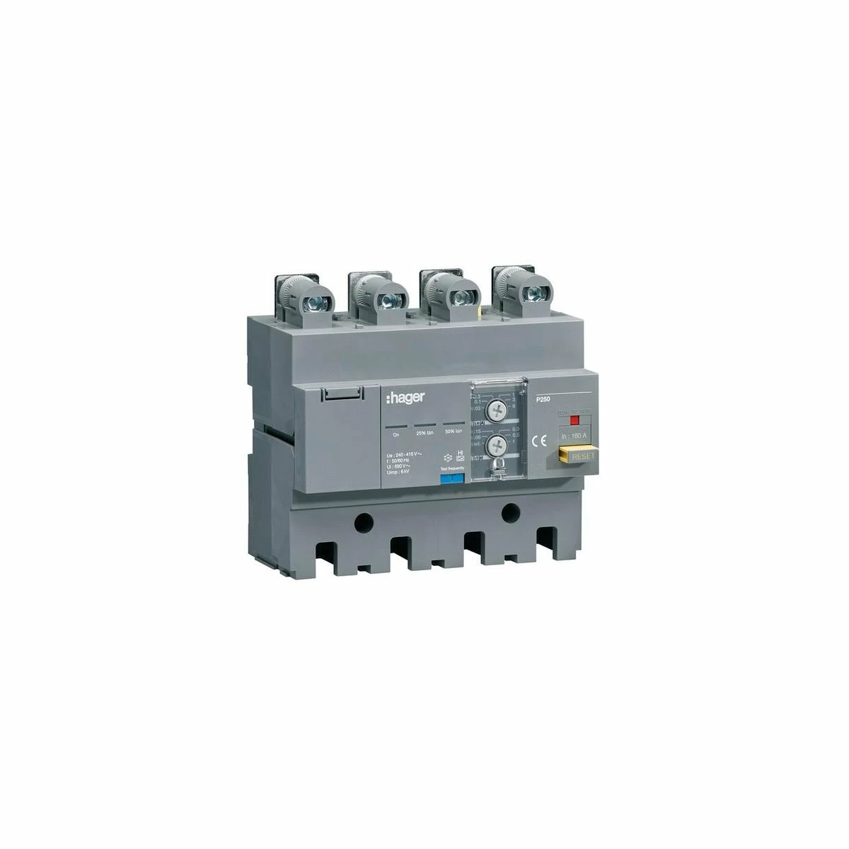 FI-Block P250 4P 160A Idn 30 mA bis 6 A stufenweise einstellbar. Elektronischer FI-Block gemäß DIN EN 60947-2 zur Nachrüstung an Leistungsschalter und Lasttrennschalter. Aufgebaut in modularer Bauform zum einfachen Anbau an die Leistungs- bzw. Lasttrennschalter.