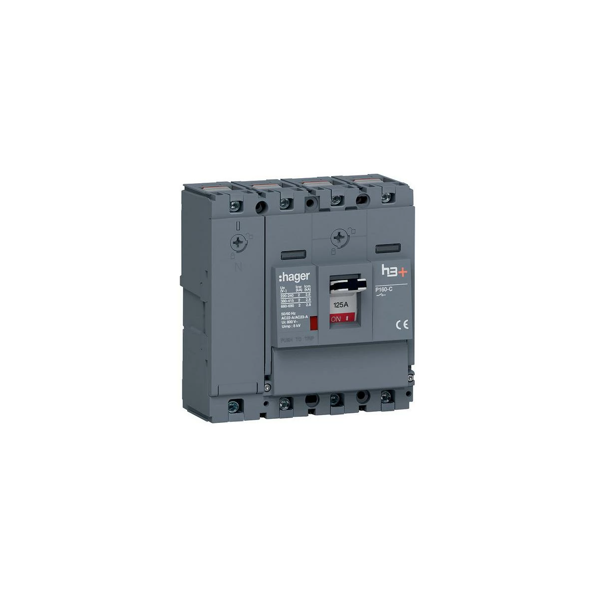 Lasttrennschalter h3+ P160 4 polig 125A CTC. Der Lasttrennschalter nach DIN EN 60947-3 trennt in elektrischen Anlagen die Einspeise- von der Abgangsseite. An der Stellung des Knebels sind die zwei unterschiedlichen Betriebszustände erkennbar (EIN = oben, AUS = unten). Eine Vorrichtung zum Verriegeln des Schaltzustandes in EIN- oder AUS-Position ist integriert und kann mit einem handelsüblichen Vorhängeschloss ohne zusätzliches Zubehör genutzt werden. Ein Klappdeckel mit unverlierbarer Schnellschraube ermöglicht den Zugang zu dem Installationsraum für optionale Hilfskontakte und andere Auslöser. Integriertes Zubehör ist über Sichtfenster ohne öffnen des Klappdeckels erkenn- und identifizierbar.